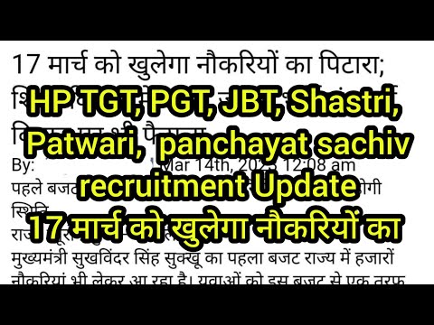 HP TGT, PGT, JBT, Shastri, Patwari, recruitment Update//17 मार्च को खुलेगा नौकरियों का पिटारा